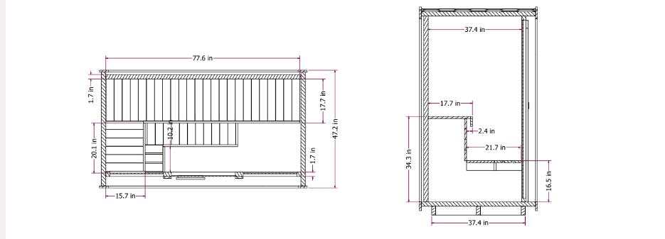 • Interior Sauna Space: 37.4 in (length) × 75.6 in (height)